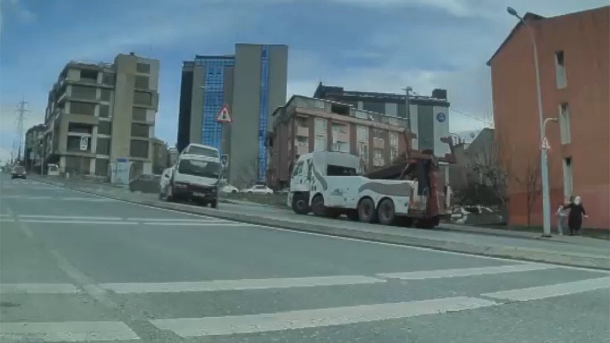 Öte yandan, kaza anı güvenlik kameraları tarafından kaydedildi. Görüntülerde, iki araç taşıyan çekicinin önce bir araca, ardından yol ortasında bulunan trafik levhasına çarptığı ve sonrasında karşı şeride geçerek park halindeki tıra çarparak durduğu görülüyor.